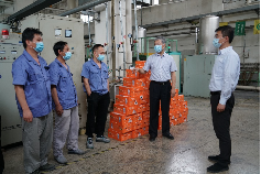 葛總首先對首量高溫車間的疫情防控、防暑降溫工作進行了實地了解,為高溫車間一線職工送上了沁人心脾的北冰洋飲料,與職工們親切地交流,叮囑他們一定要注意自身疫情防控同時做好防暑降溫。